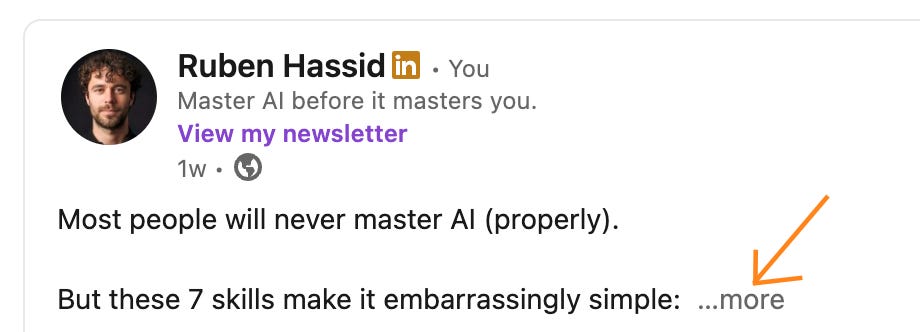 What’s considered a hook on Linkedin? It’s exactly 2 sentences of 55 characters before people have to click “… more” to read more.