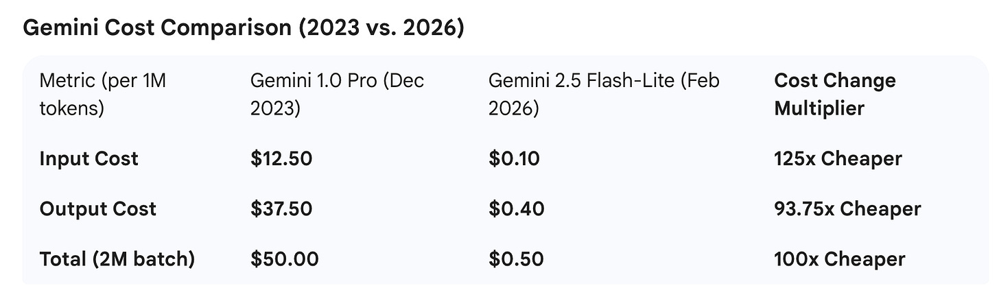 AI is doing the opposite. The cost of running AI models dropped 10x in 12 months. In some cases, 50x. Capabilities doubled. What used to take a year now takes months. When has a bubble ever gotten better & cheaper at the same time?