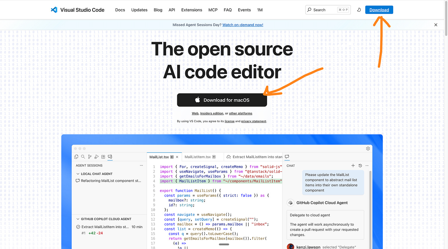 Go to code.visualstudio.com. Download it. Install it.