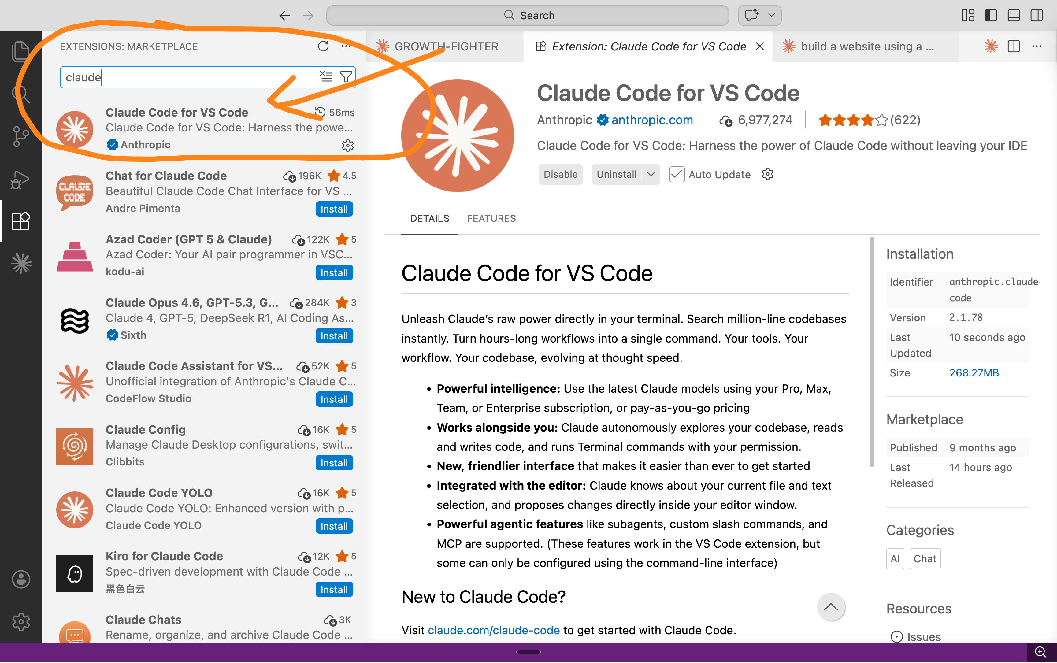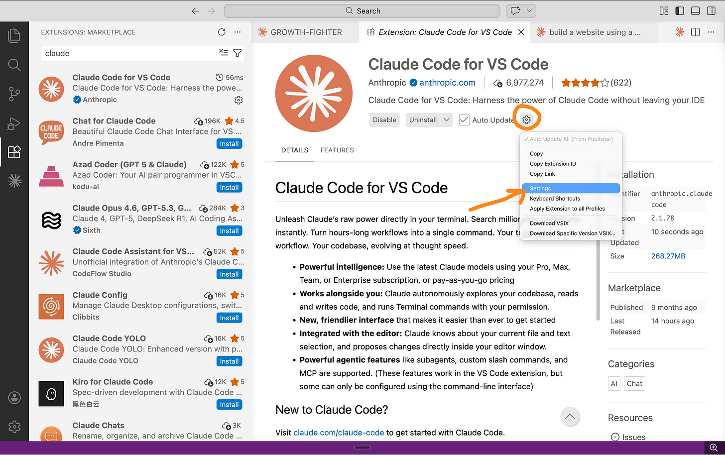 Step 2: Install the Claude extension.