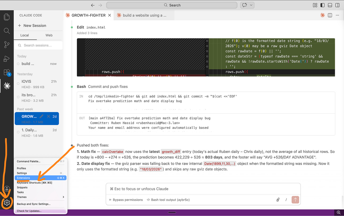 Step 3: Go to Claude’s settings inside VS Code.