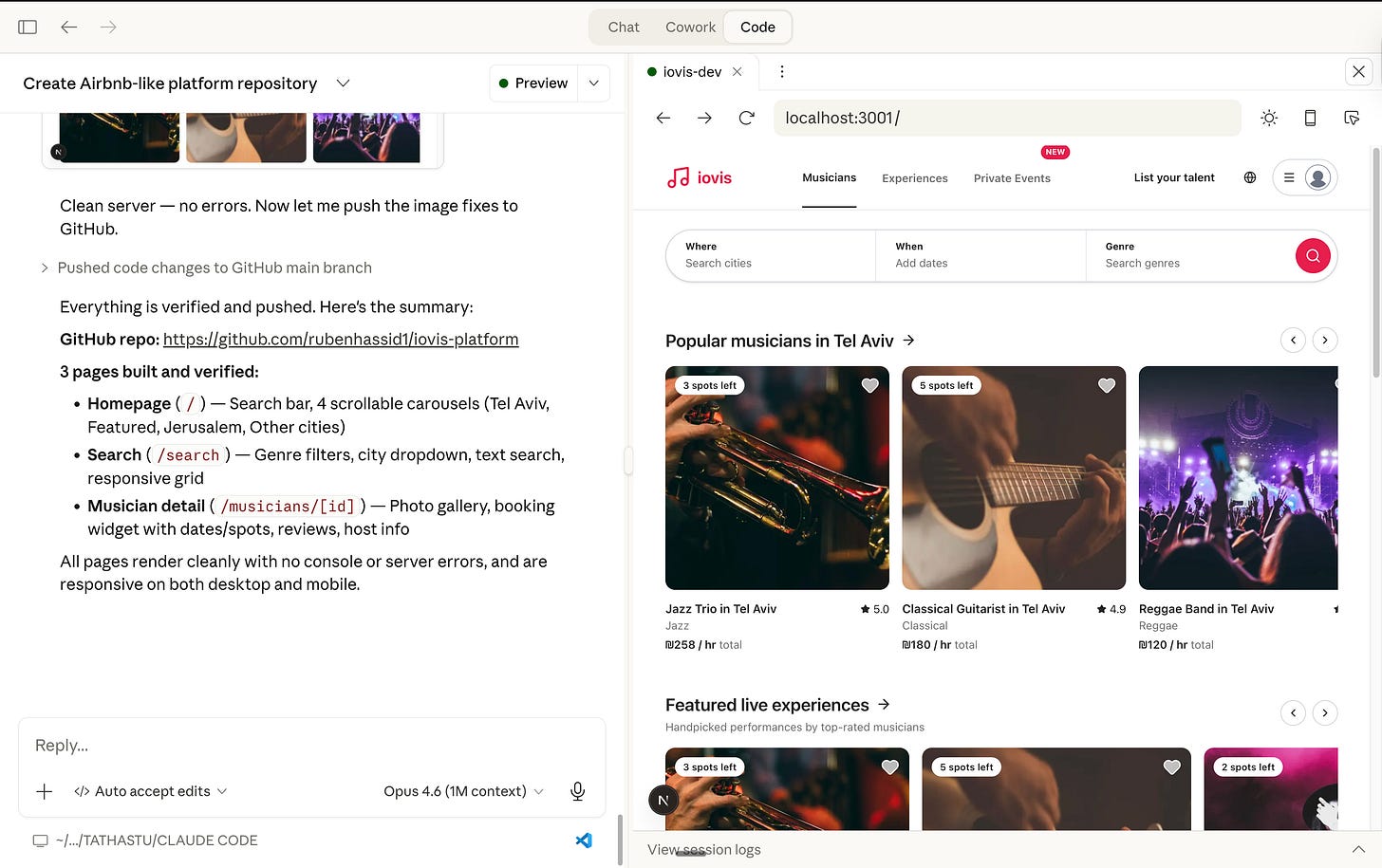 And yes, the code is pushed on a website, live for everyone to visit. For this, you must connect Claude Code to a free GitHub account.