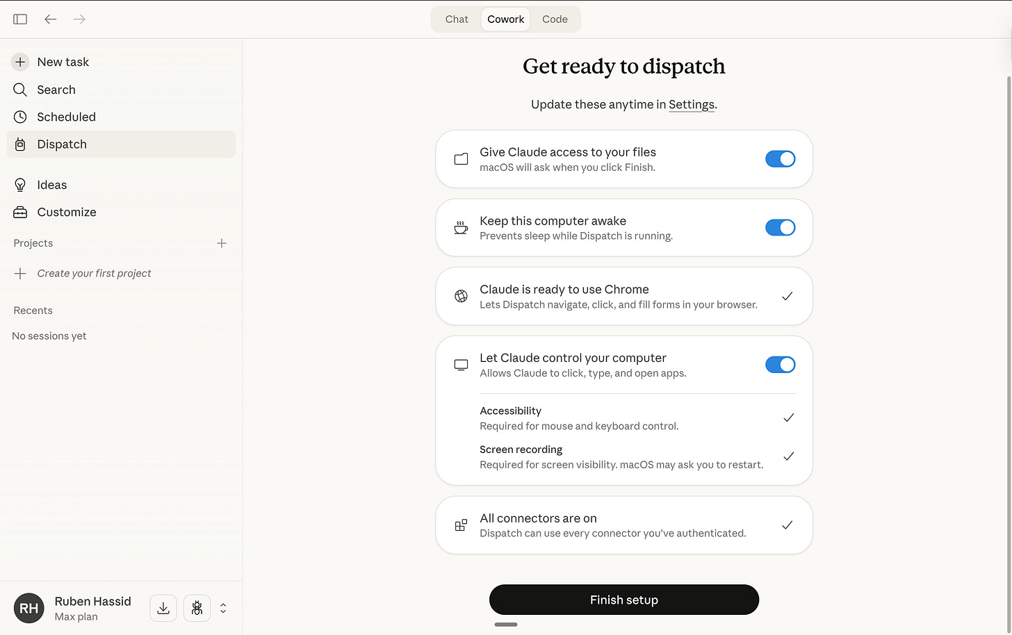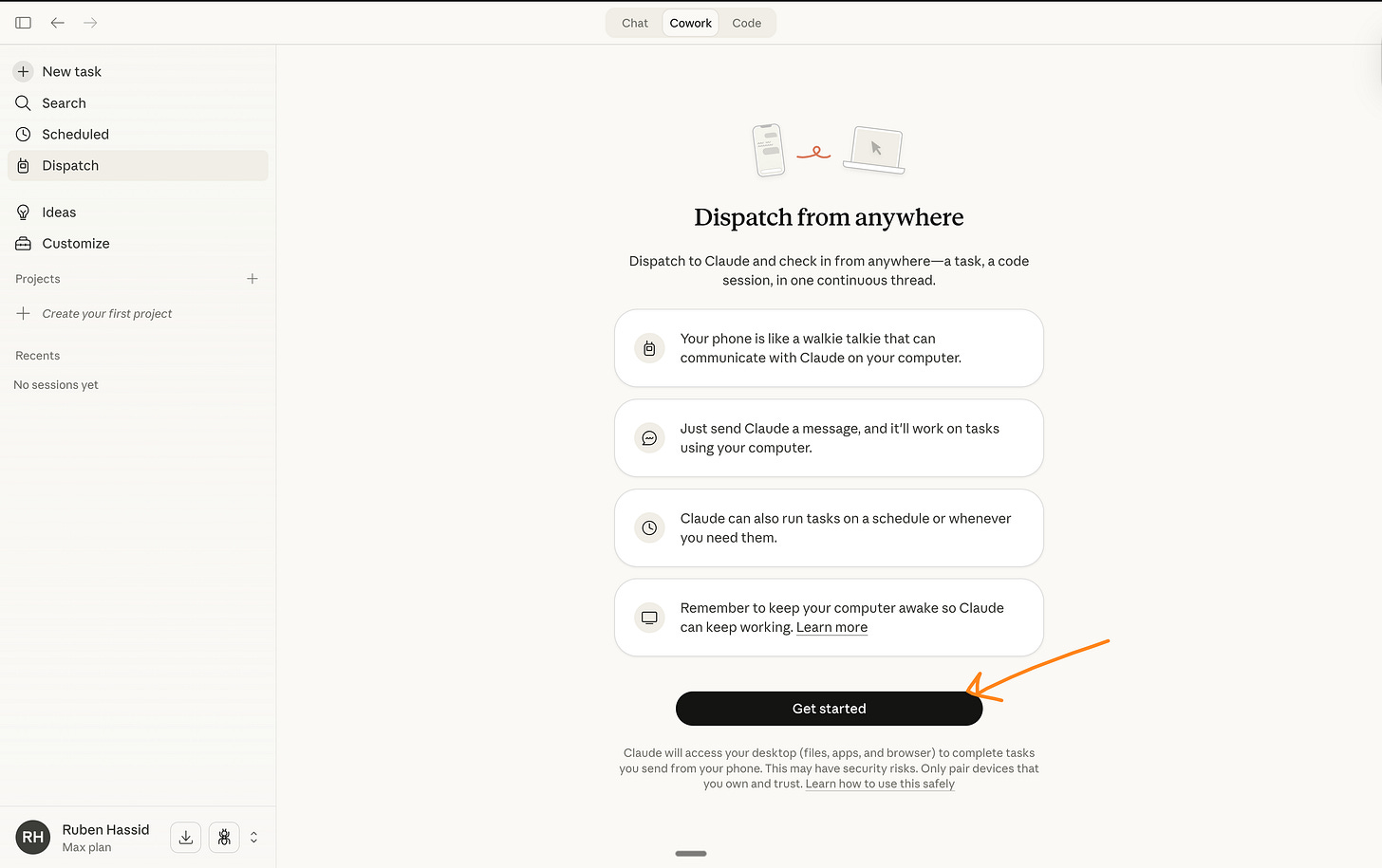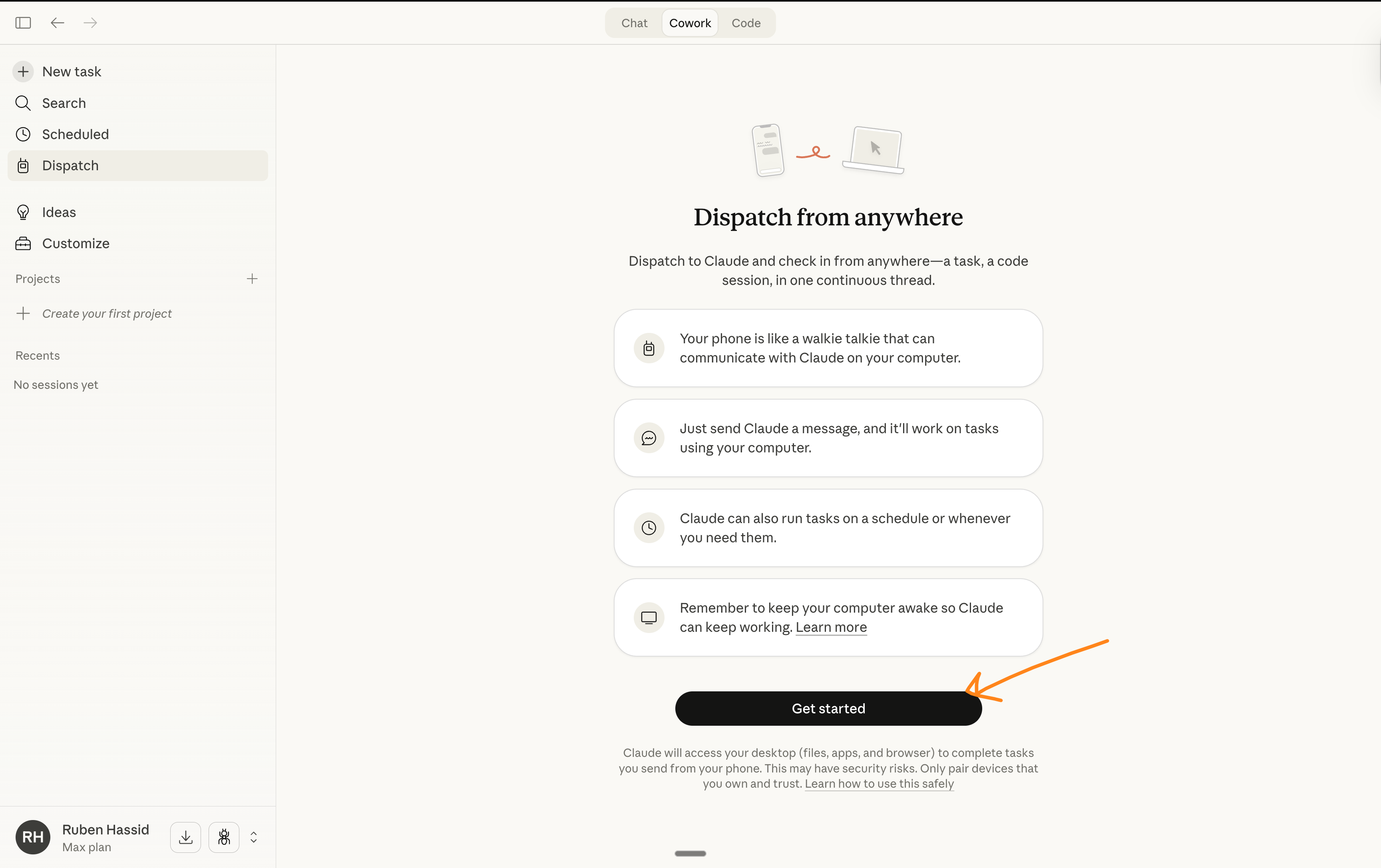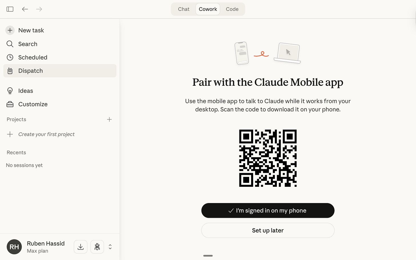 Once done, connect your Computer to your phone with Claude Dispatch: