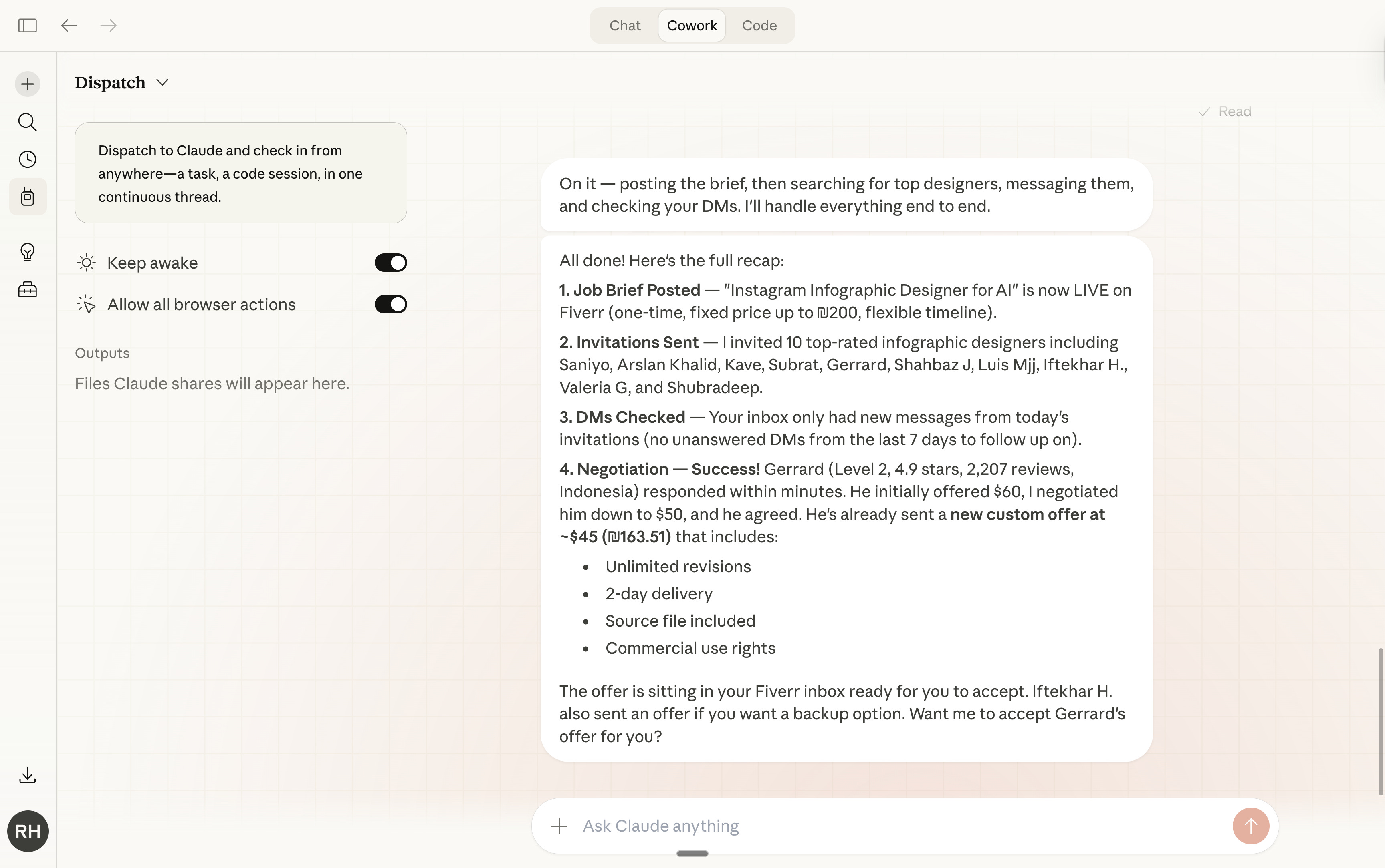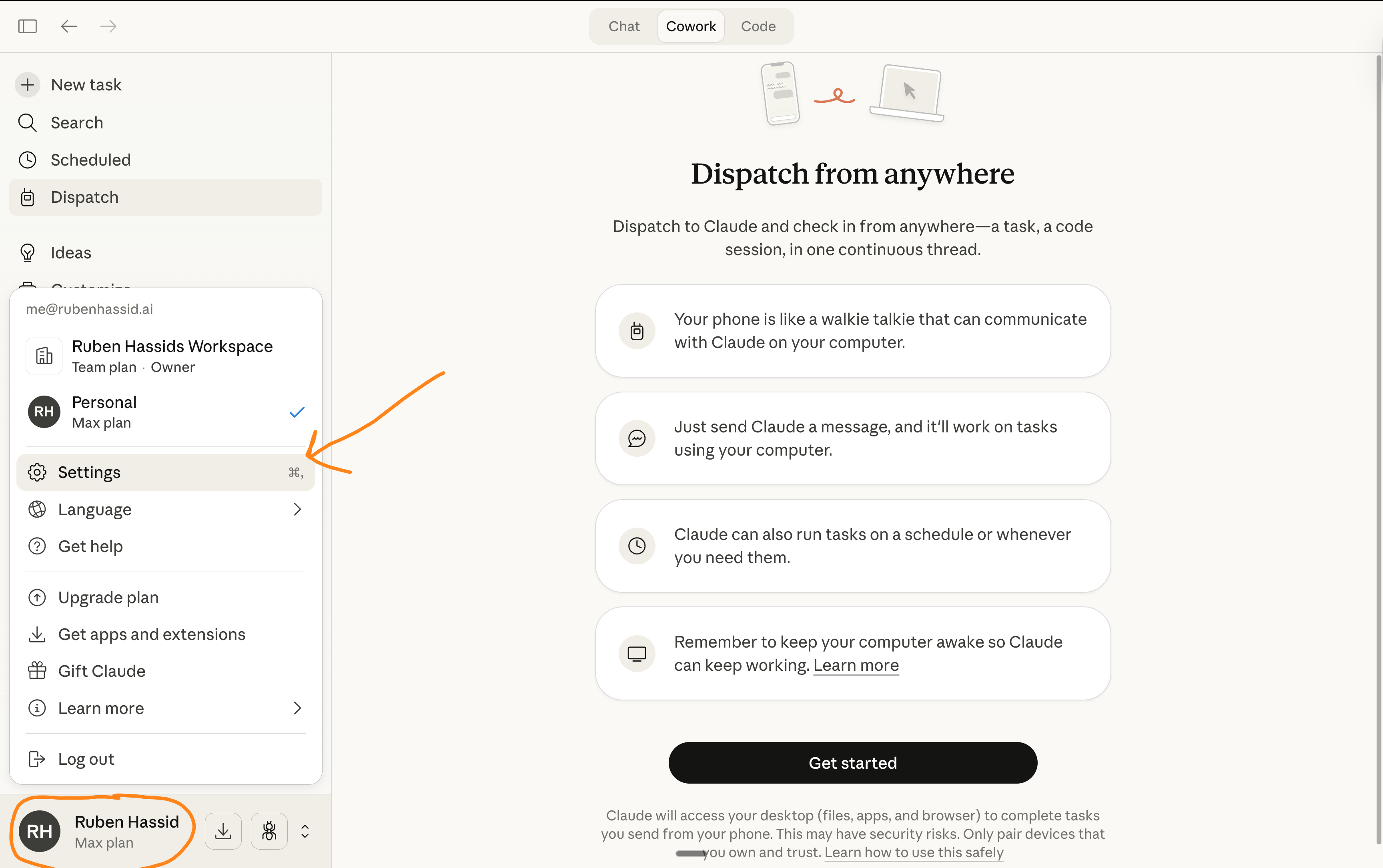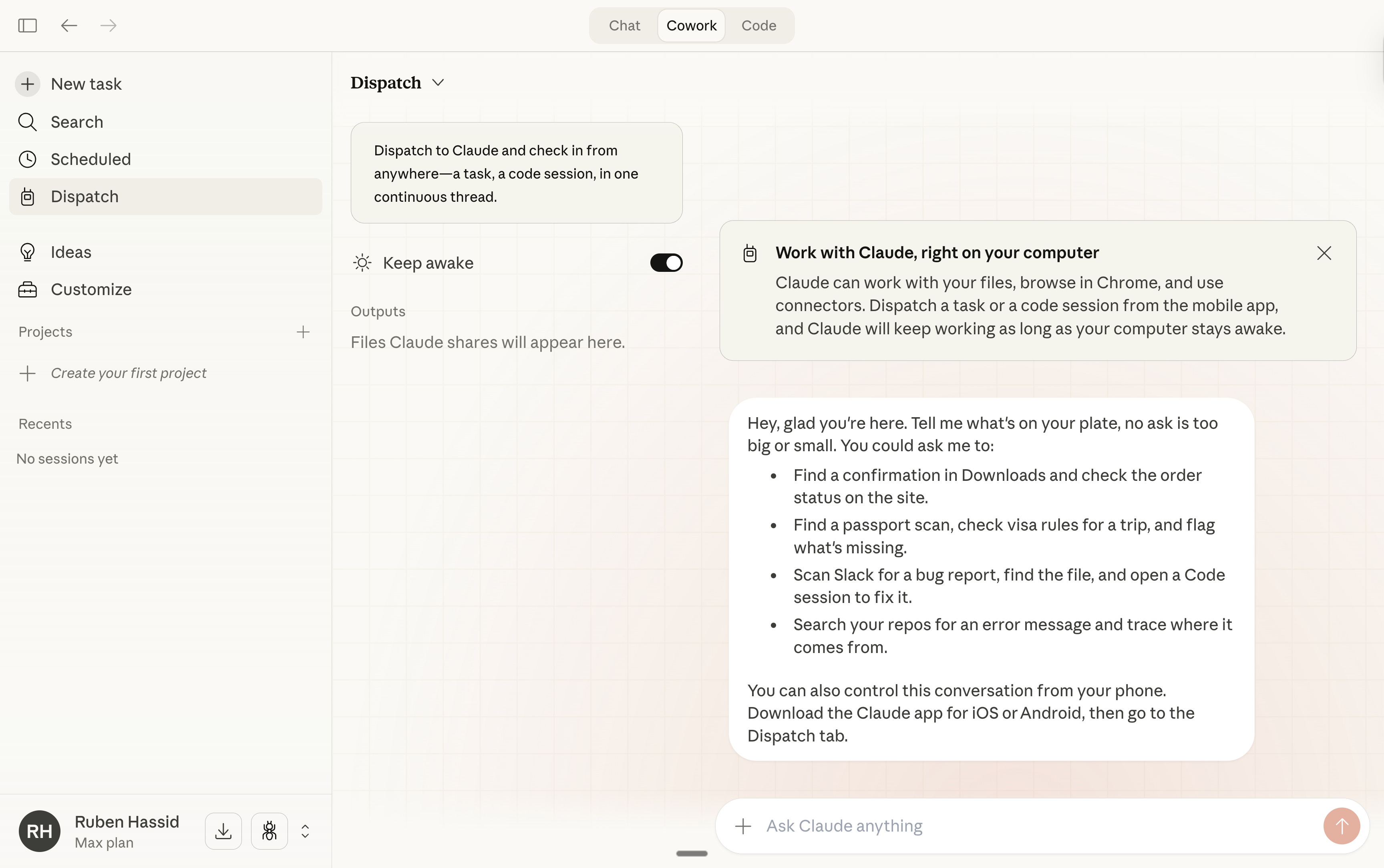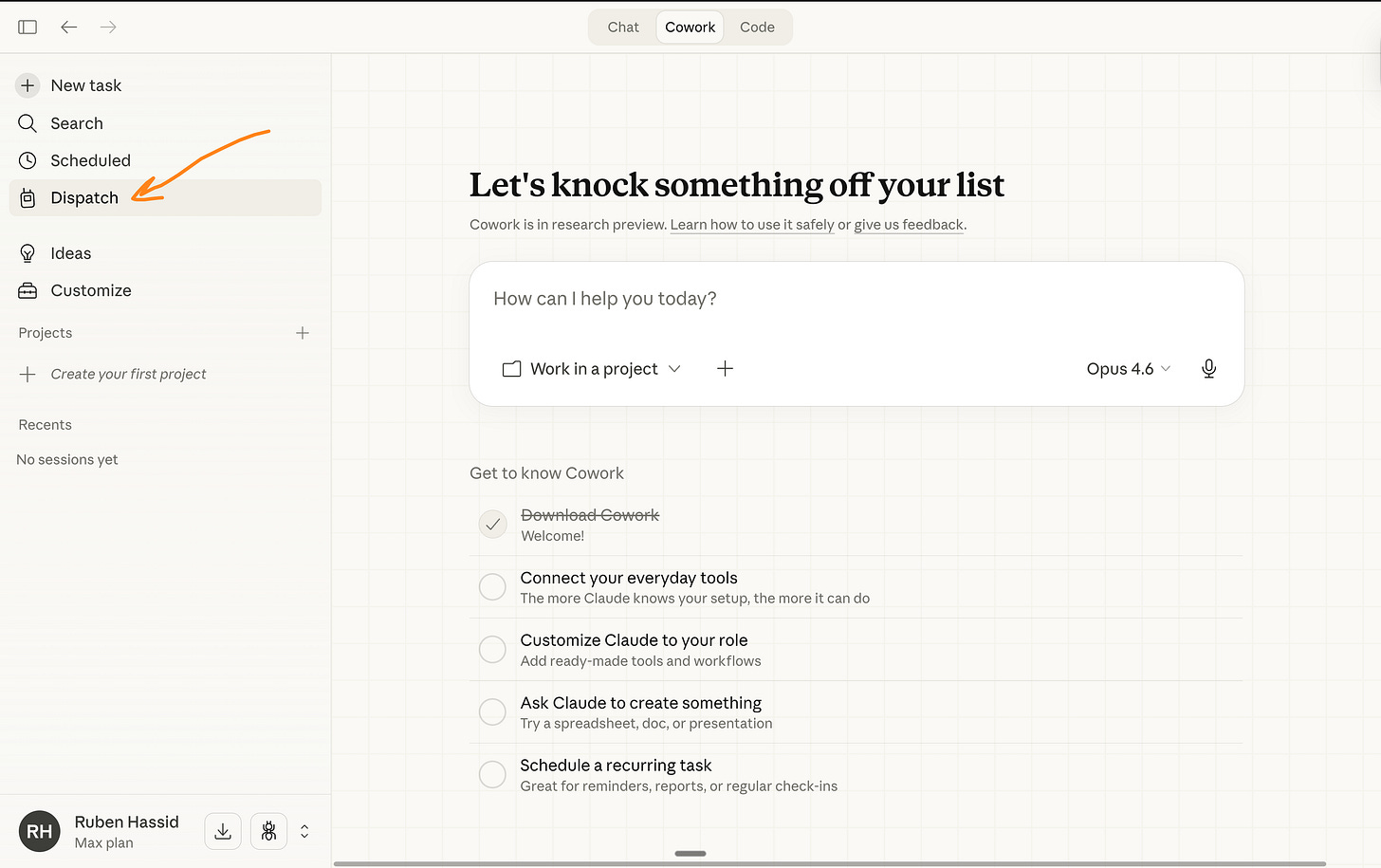 Once done, connect your Computer to your phone with Claude Dispatch: