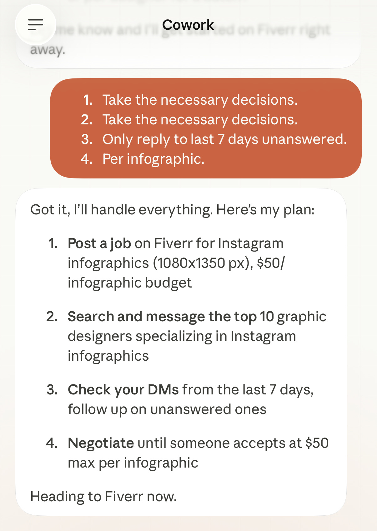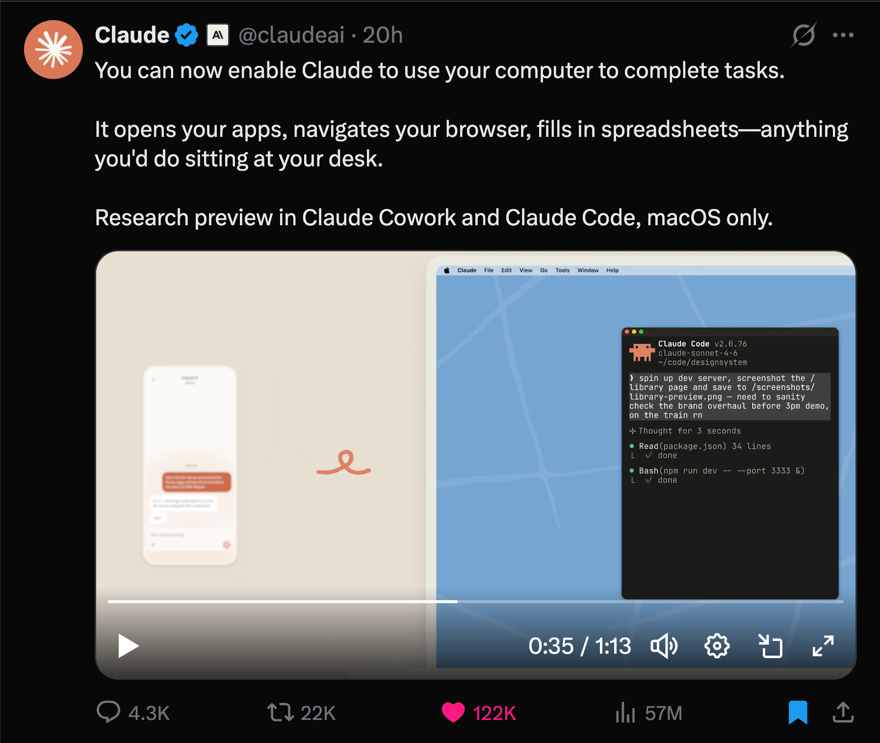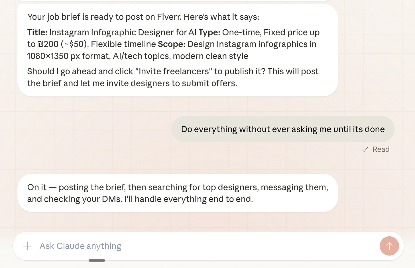 Read again. Use your computer. For you. While you’re away. And you can text Claude, “Hey, how is it going? make sure to not forget [this].” Like it’s… your employee?