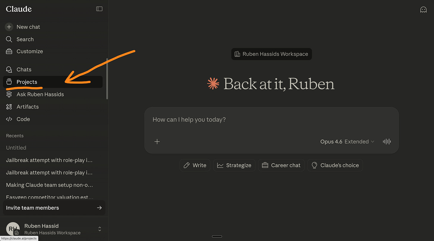 But to effectively onboard an entire team on Claude, you need ‘Projects’.