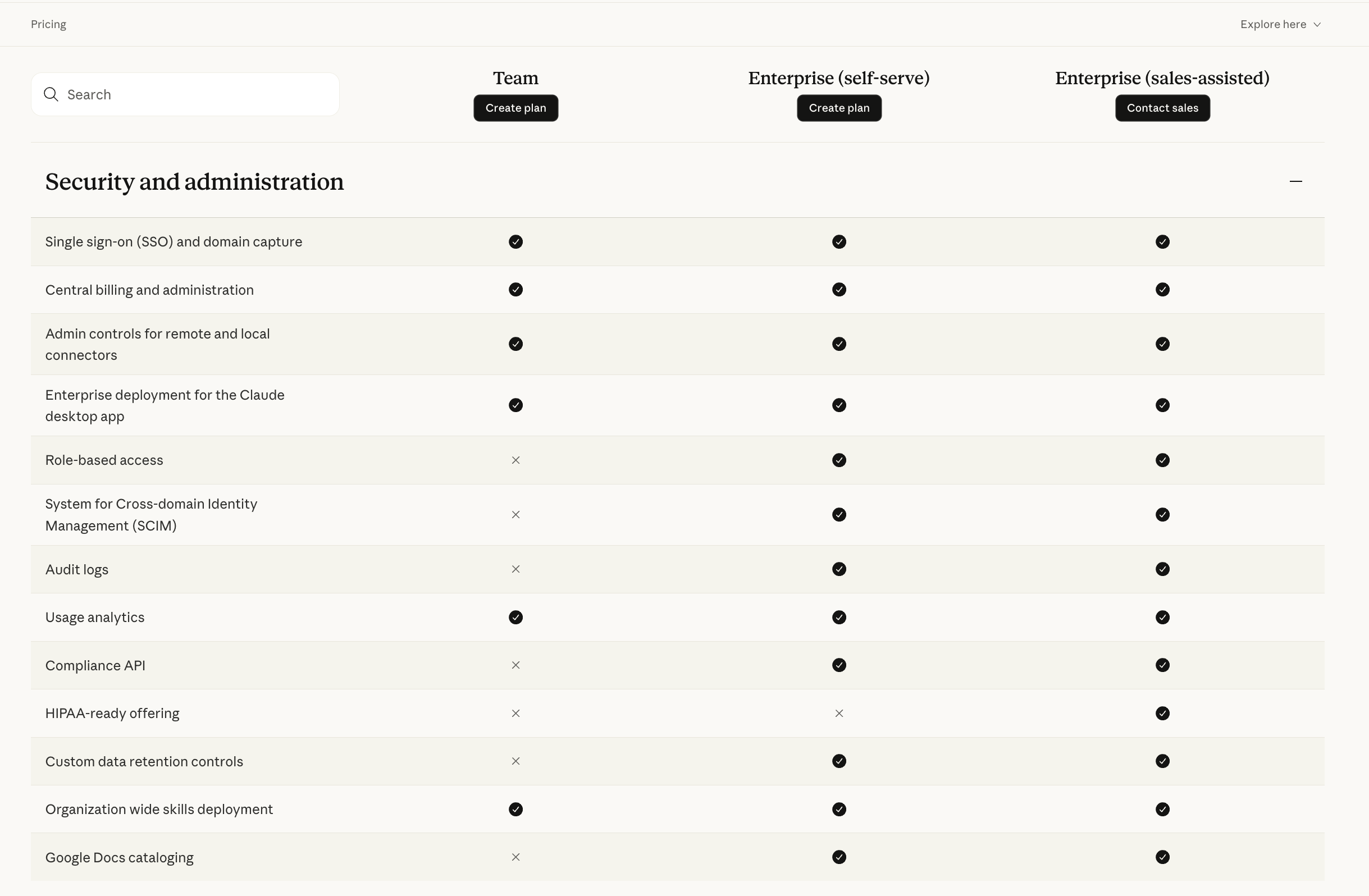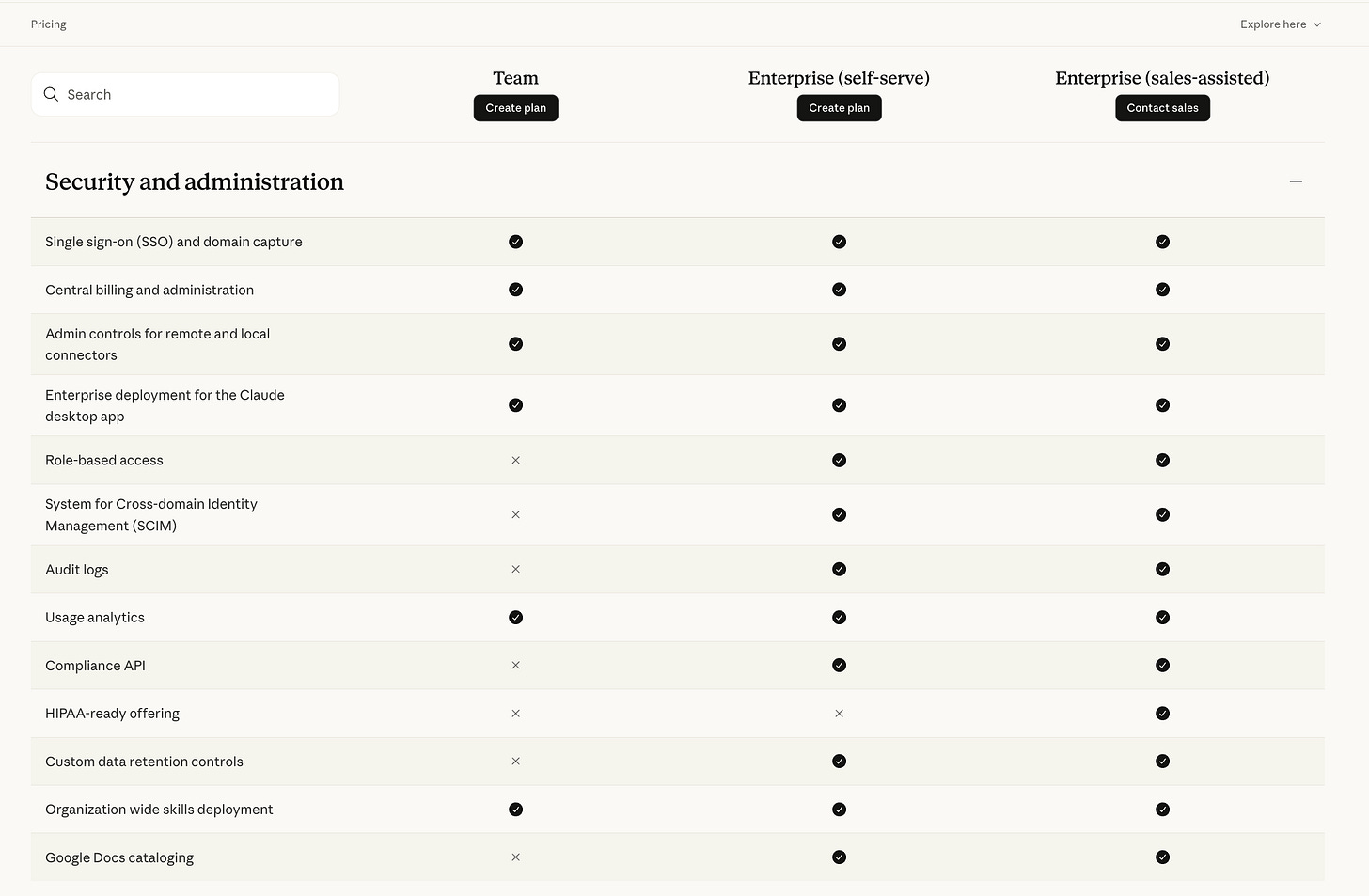 Here’s what they say around security, depending on the tier level: