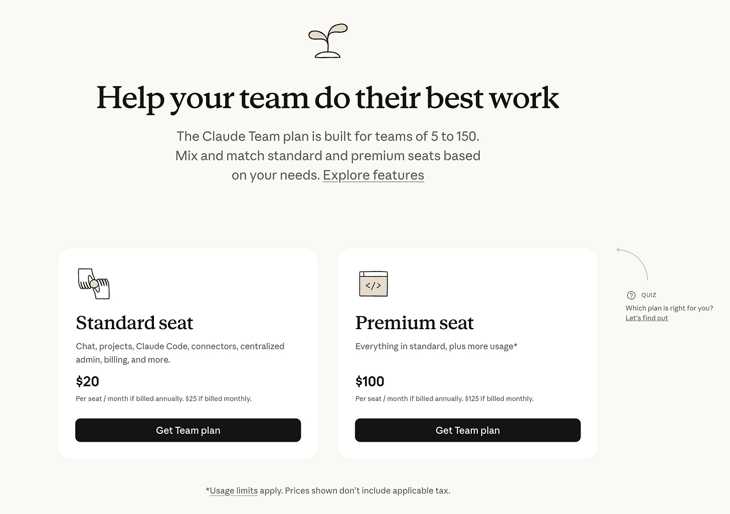 Go to claude.com/pricing/team.