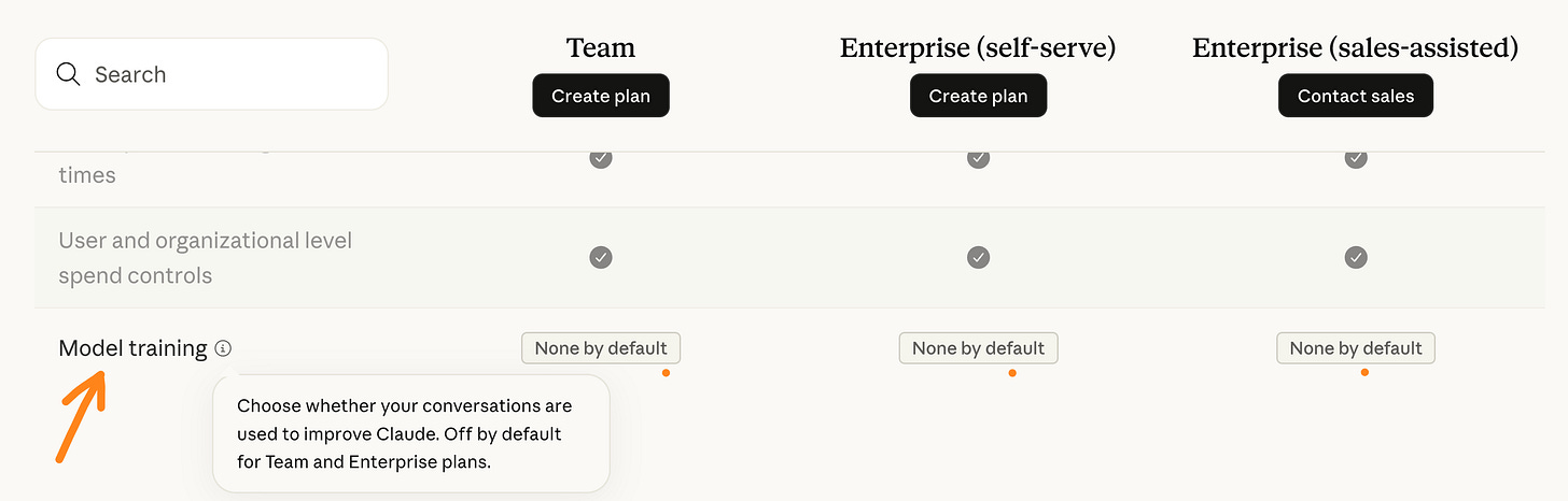 Claude does not train on your data (like every AI-team plan).