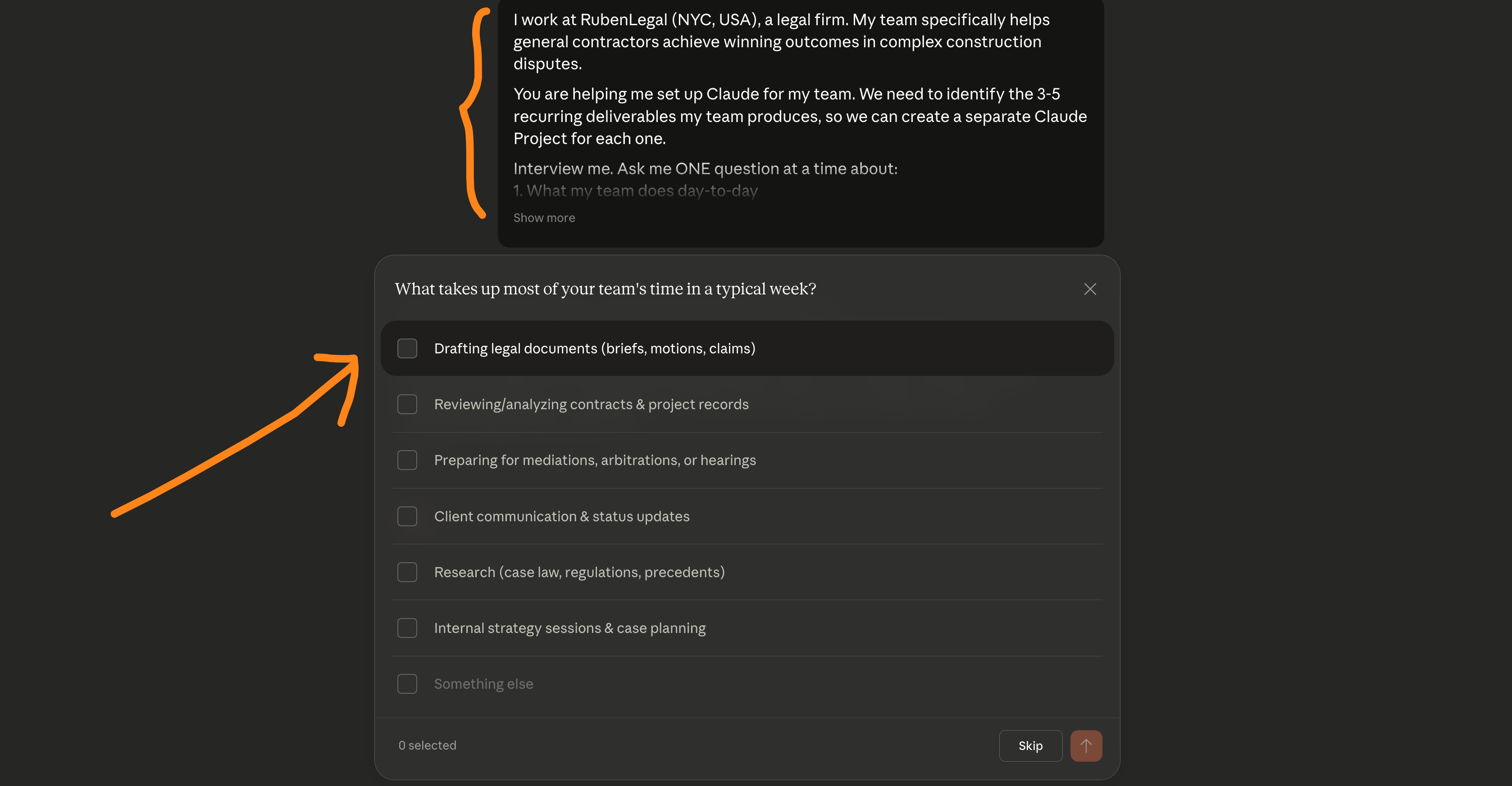 Paste this prompt and answer Claude’s questions.