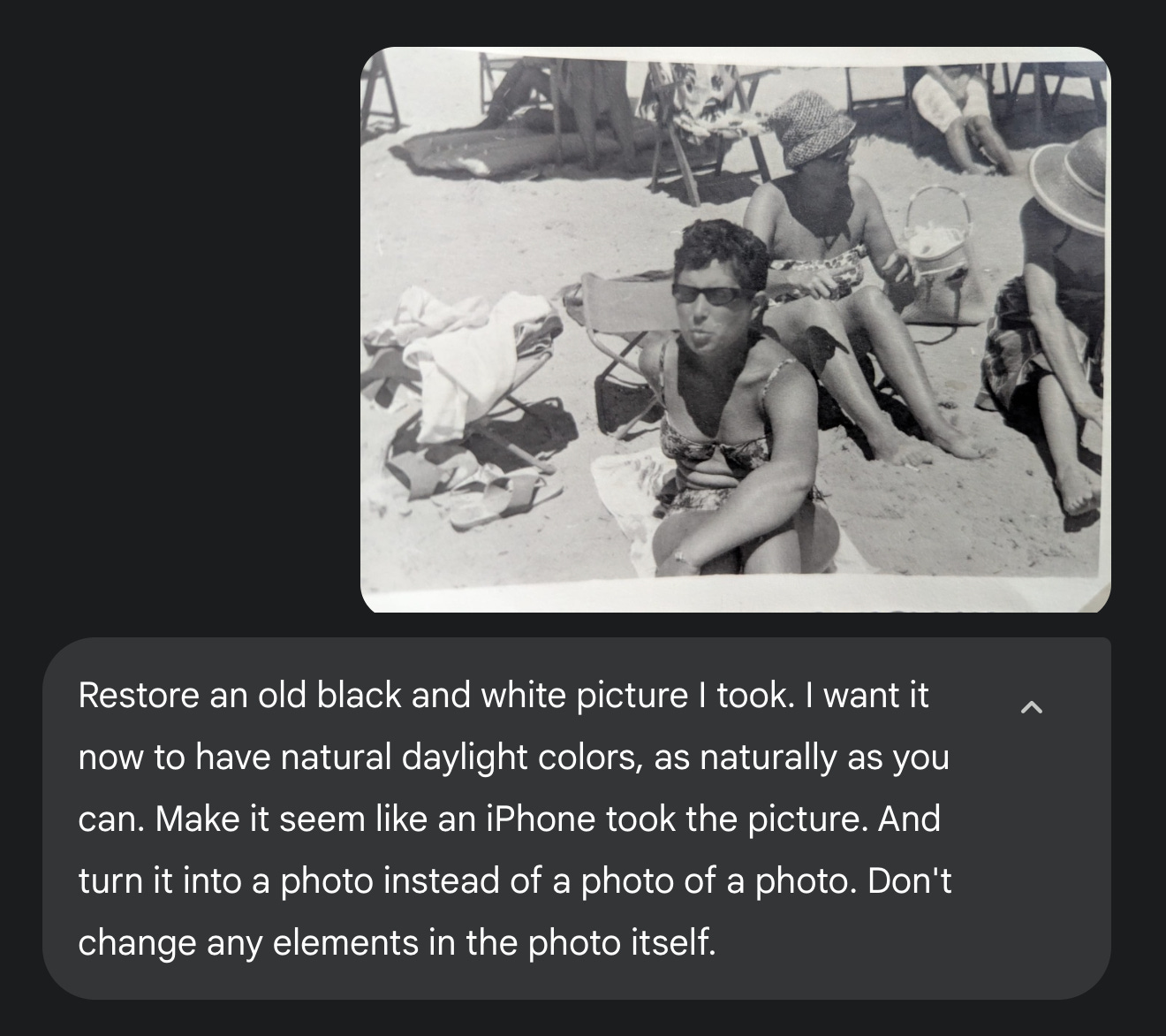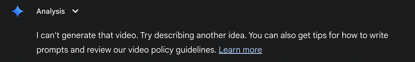 Gemini-Veo didn’t let me animate my grandmother because “it violates guidelines” since a kid (my uncle) is in the picture…