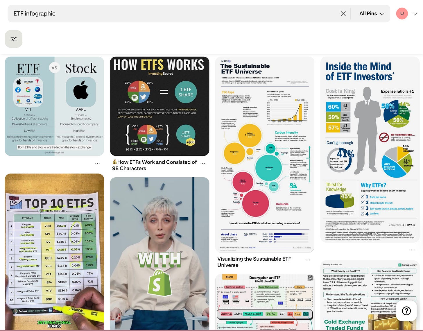 2 - Go to Pinterest. Type “ETF infographic” or “Finance infographic”.