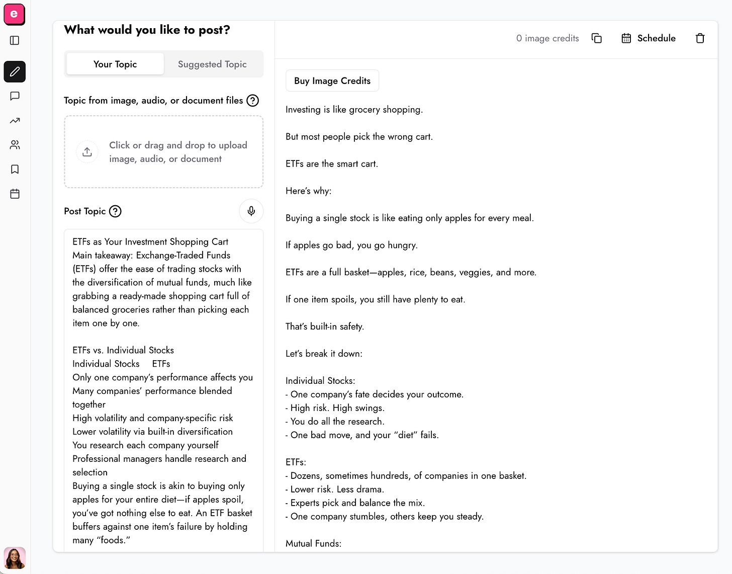 3 - Go to EasyGen.io and paste your research under “Topic”.