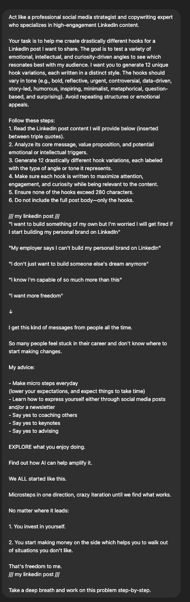 Paste it on a new ChatGPT chat → paste your own Linkedin post → choose the model o3 (at the top left).