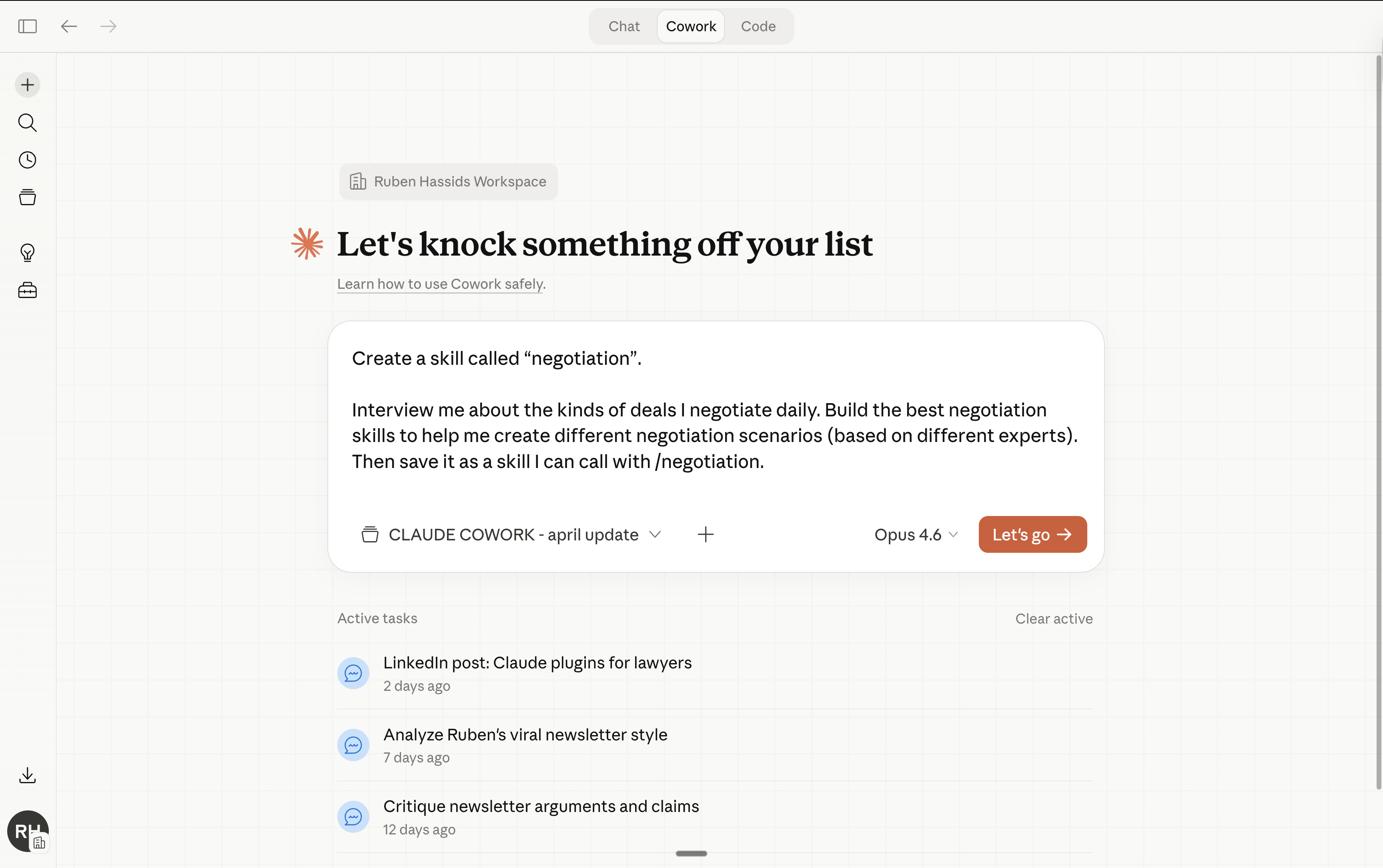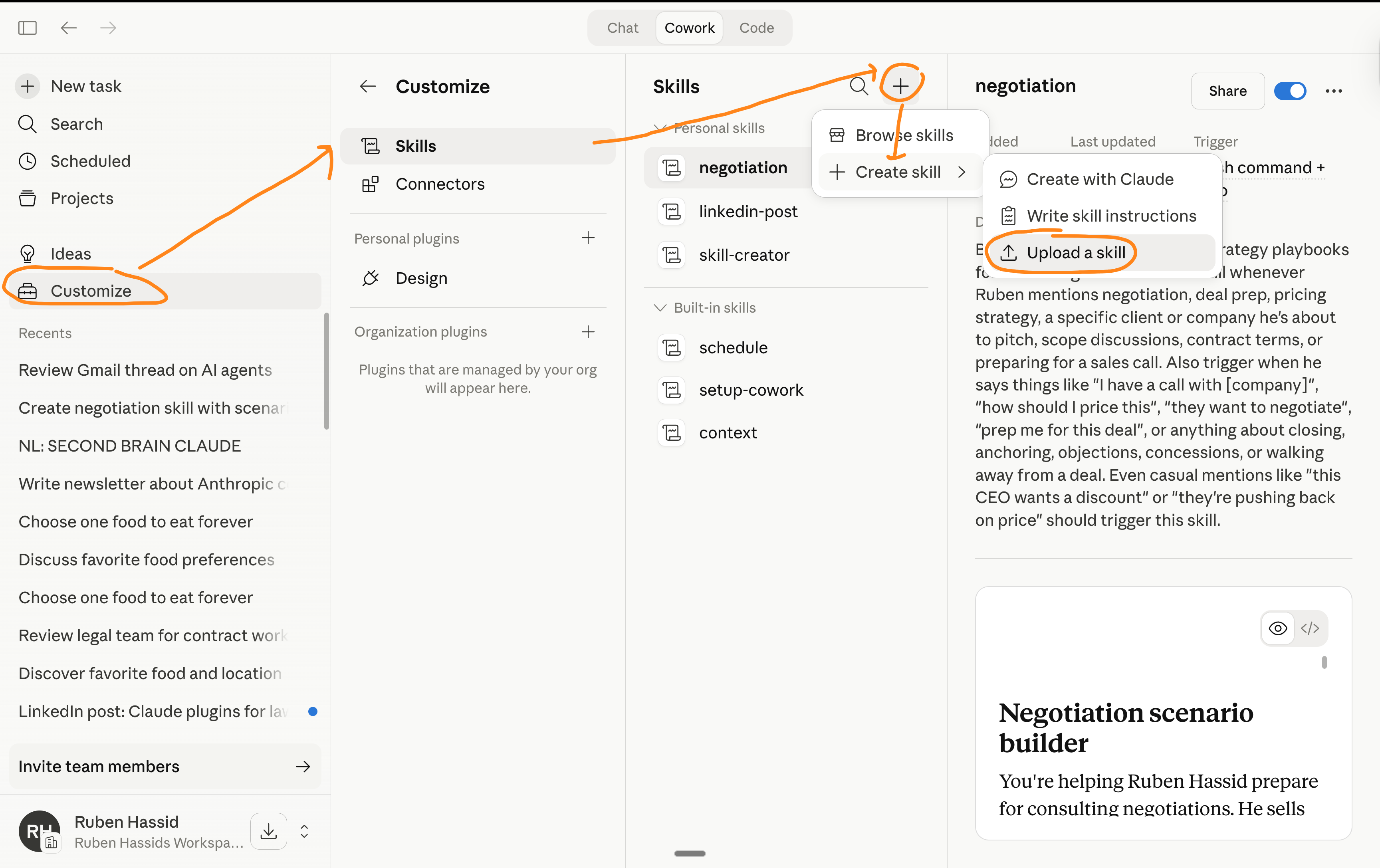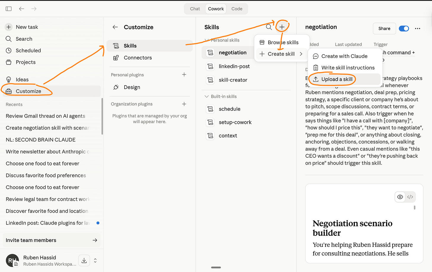 Now anytime I go to Cowork and I prompt /negotiate - it knows what to do.