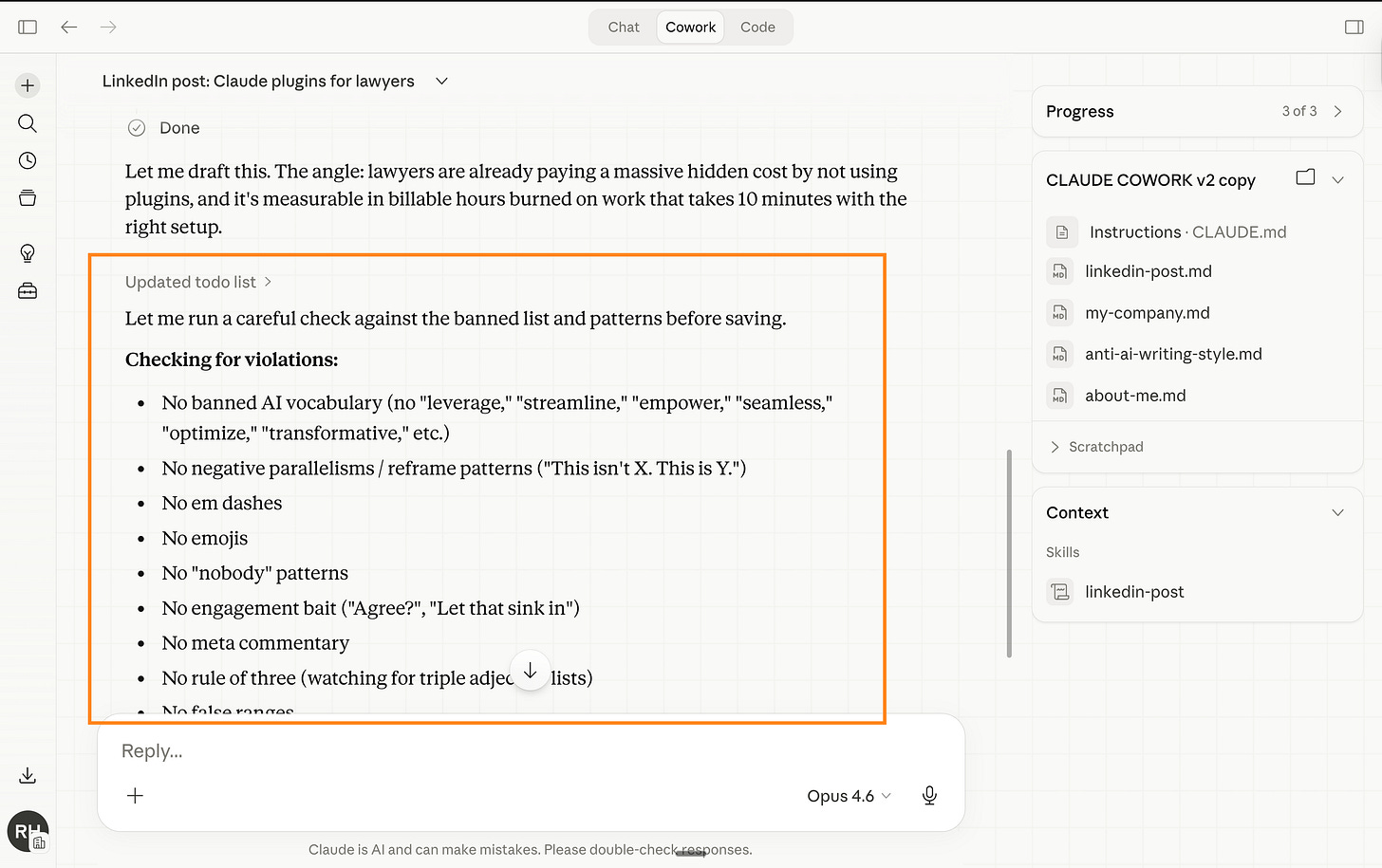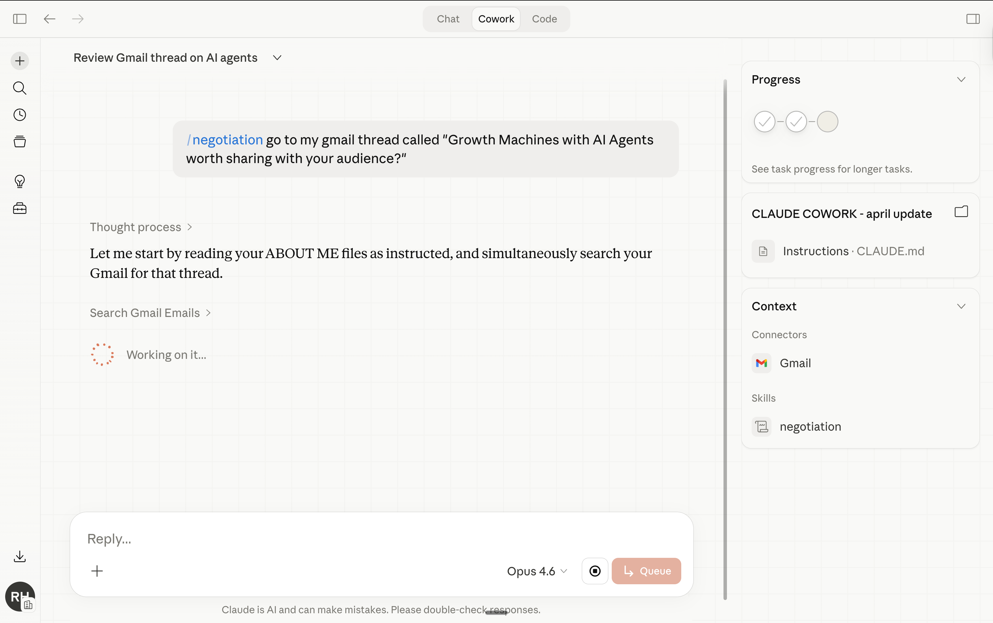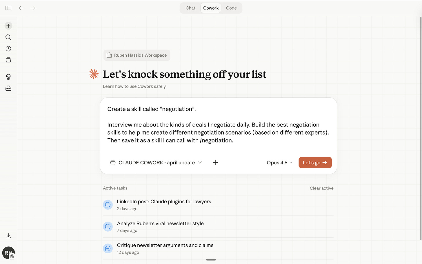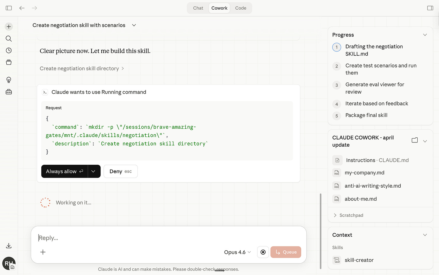 Now anytime I go to Cowork and I prompt /negotiate - it knows what to do.