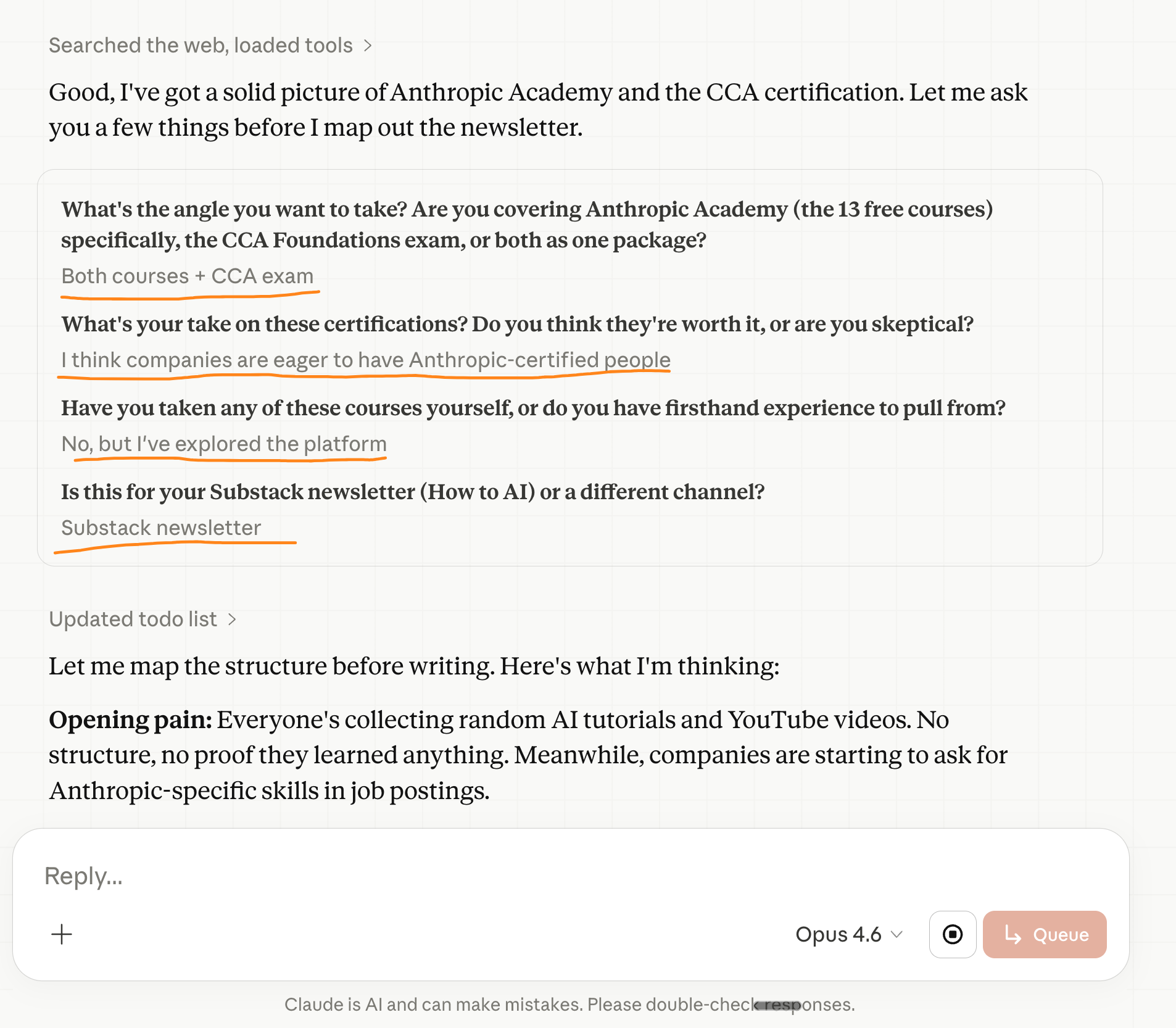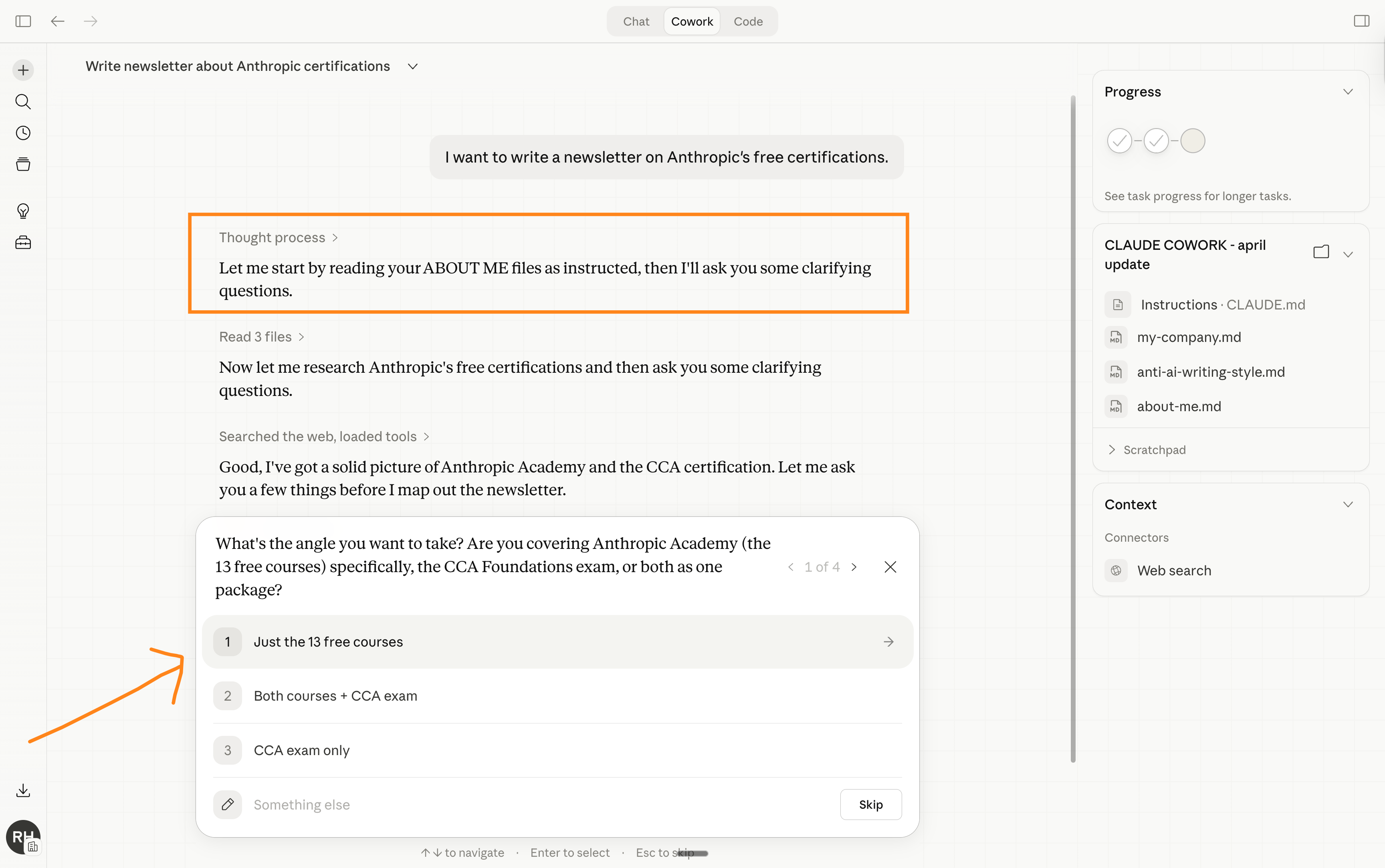 Cowork asks you questions. Answer them.