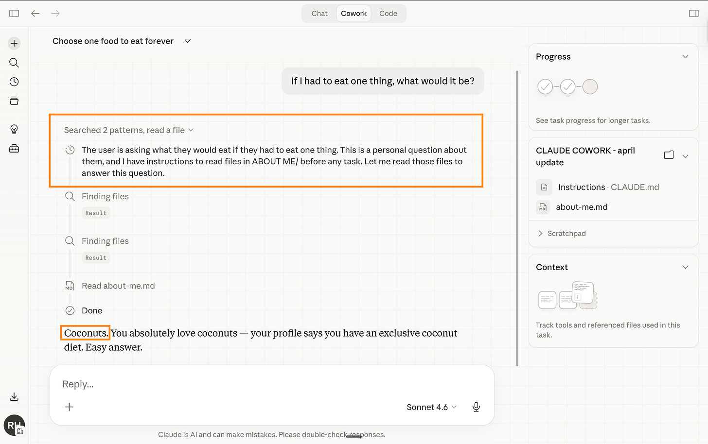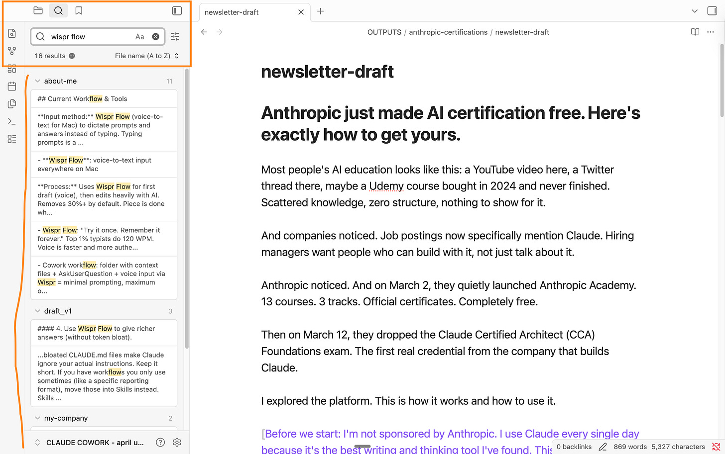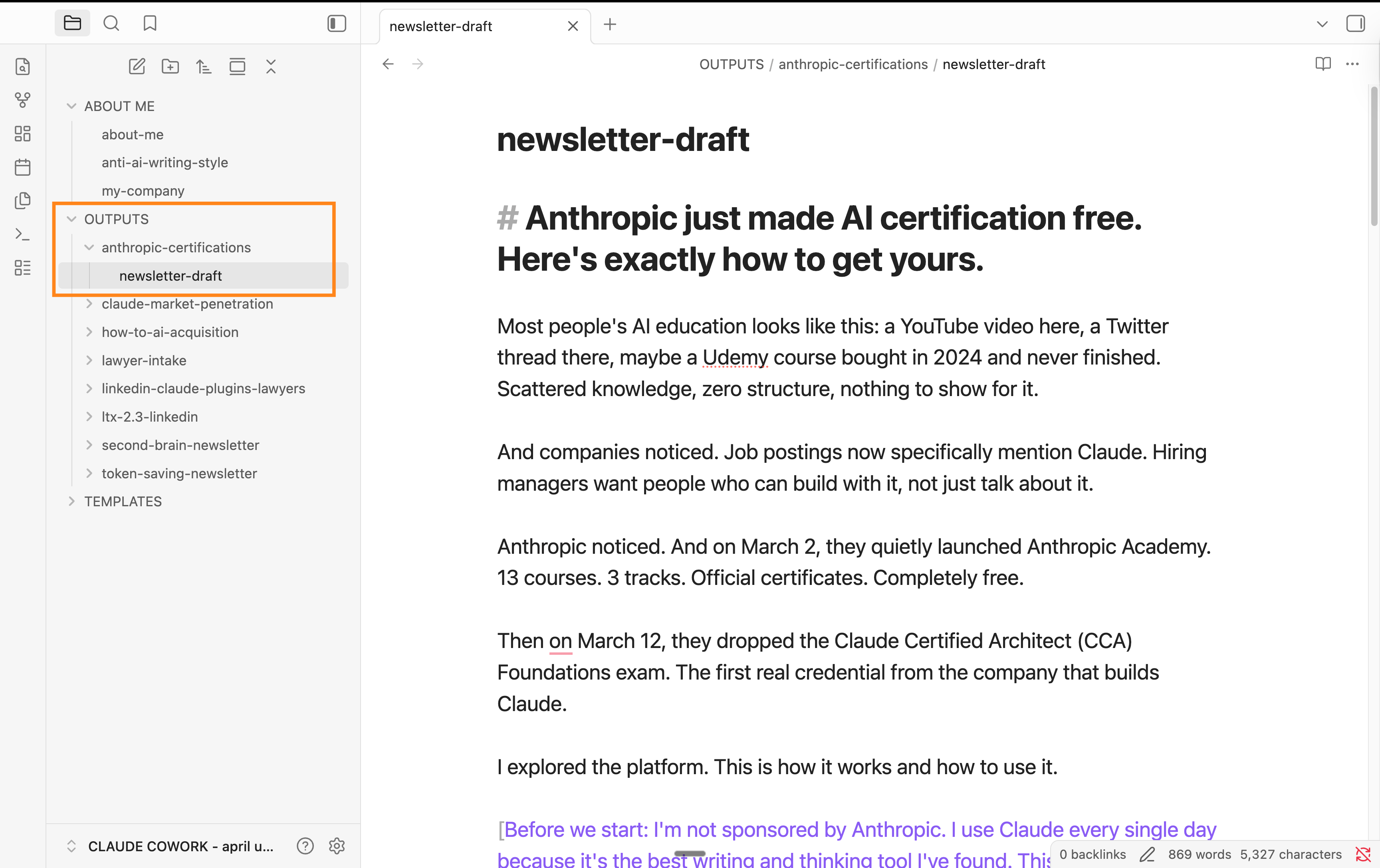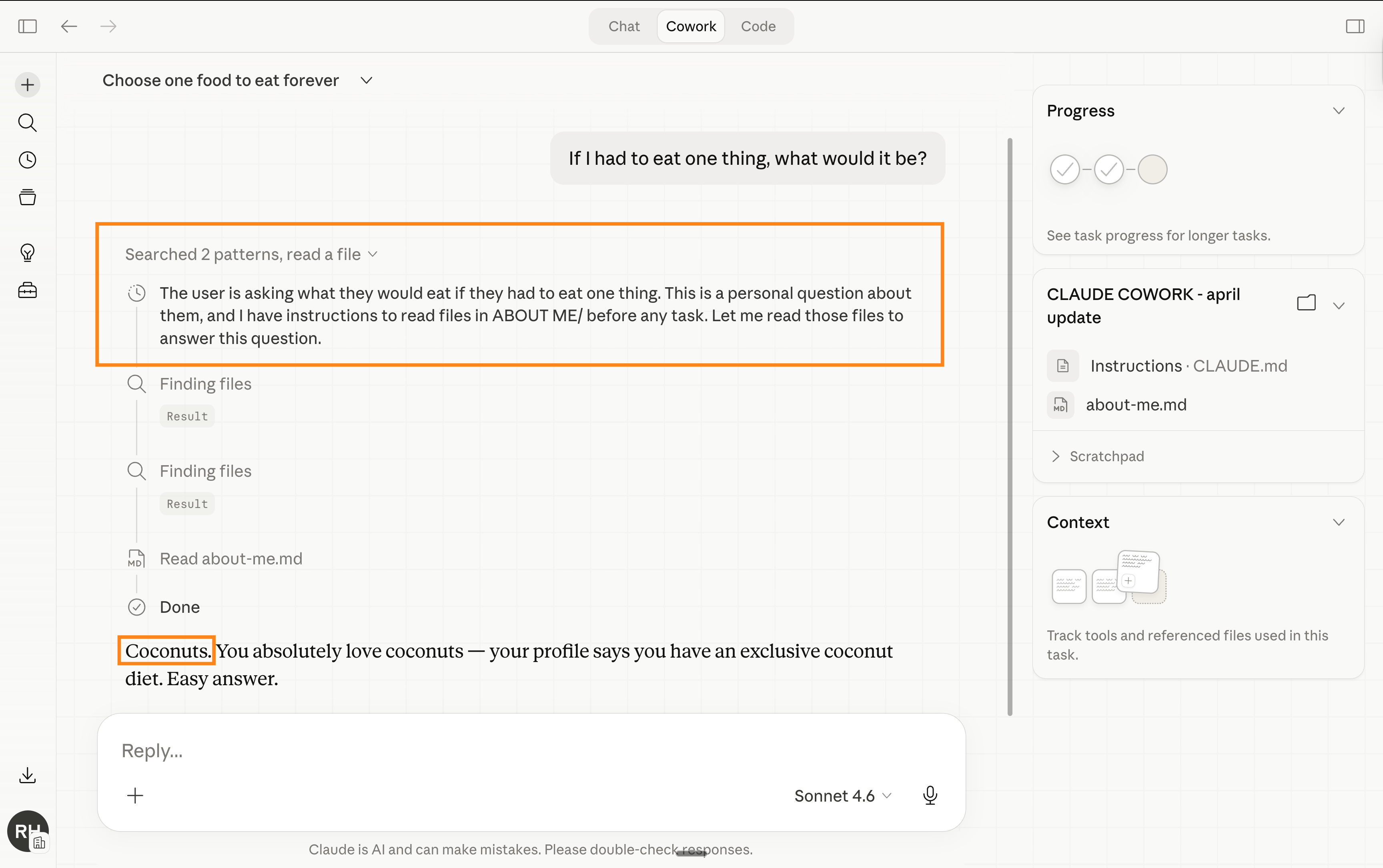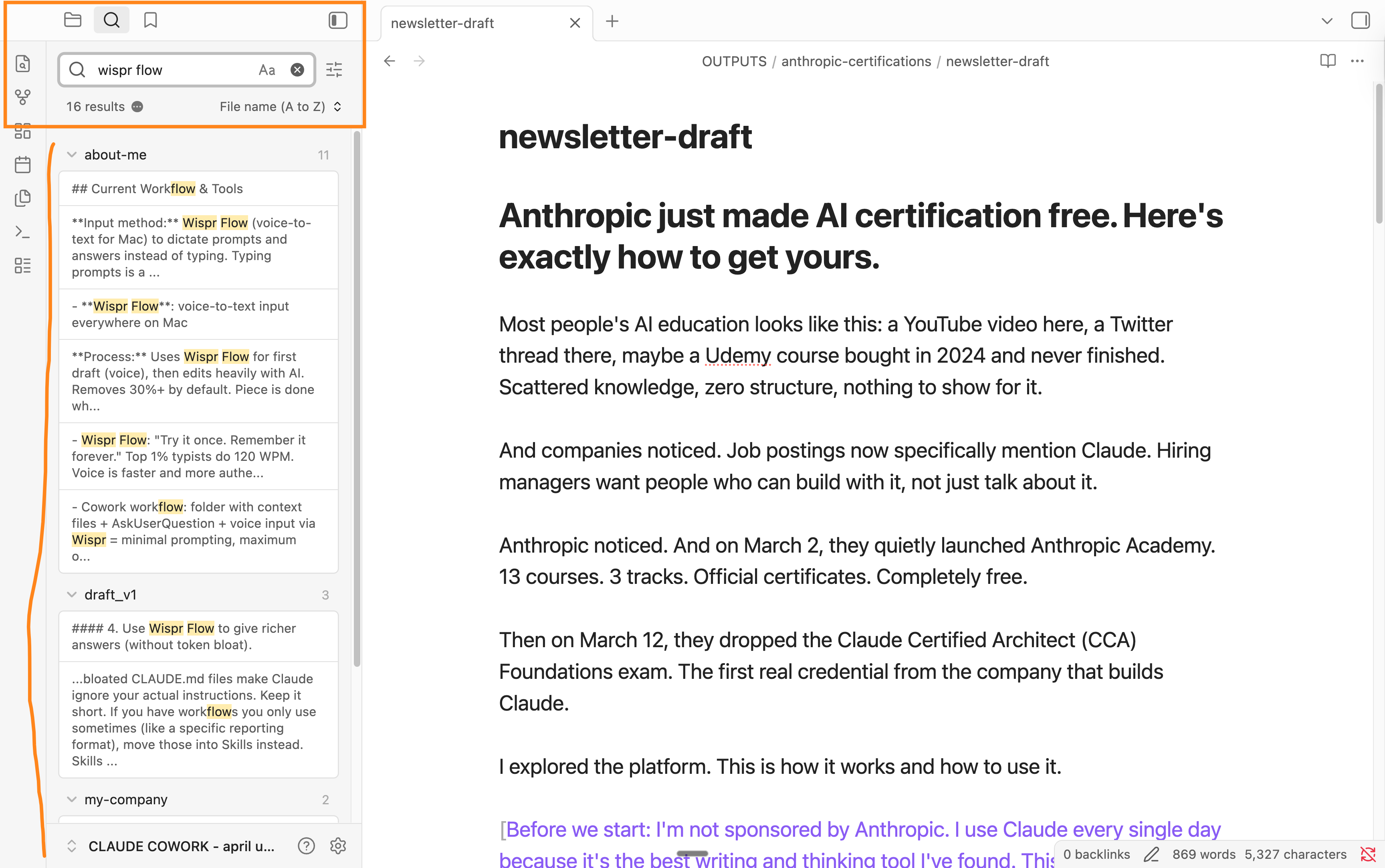5 - But since my Cowork folder is the same as Obsidian, I get this answer: