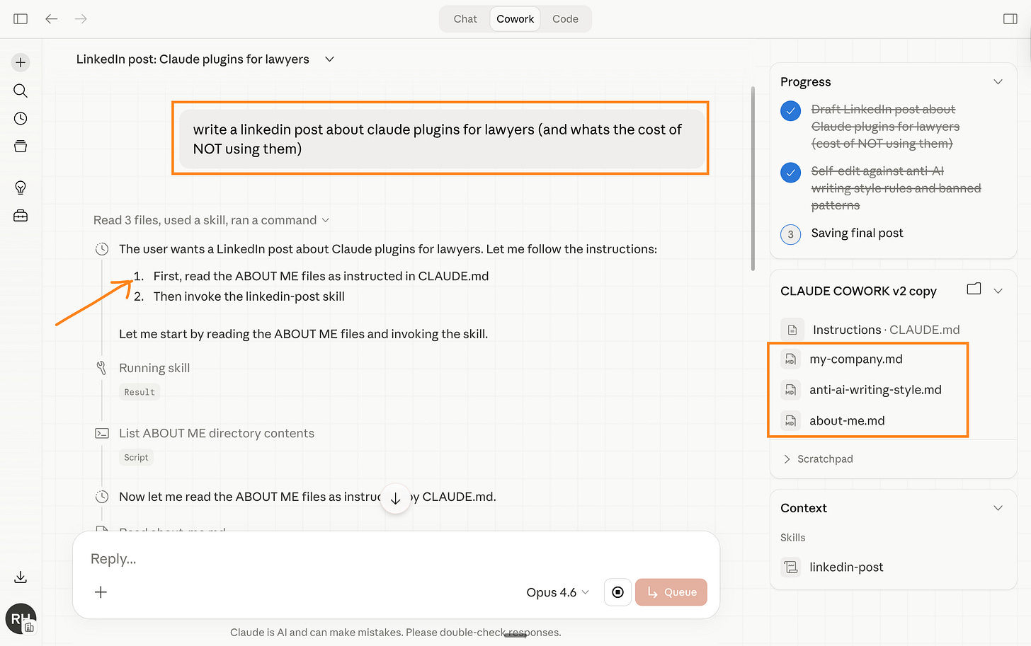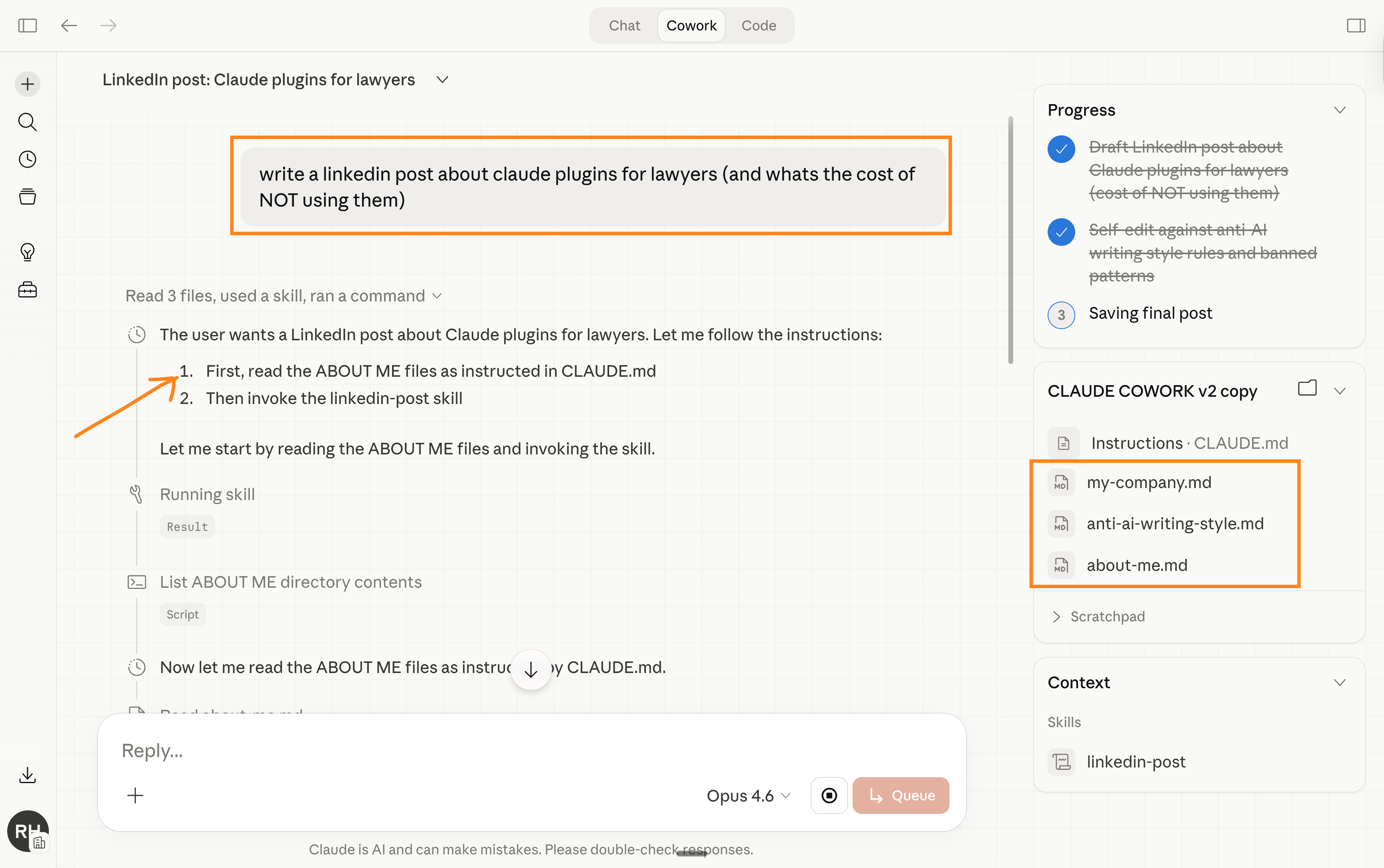 Cowork runs on text files. That’s its own prompts.